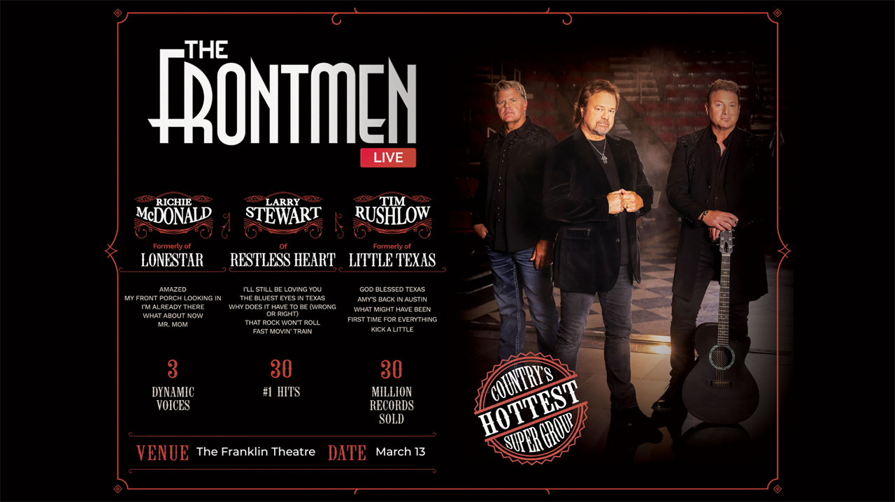 With 30 No. 1 hits and 30 million albums sold, THE FRONTMEN are the voices behind the soundtrack of Friday night honkytonks, first kisses, and heartbreaks for over three decades. Fans may not always know their name, but they know every word to their songs.
