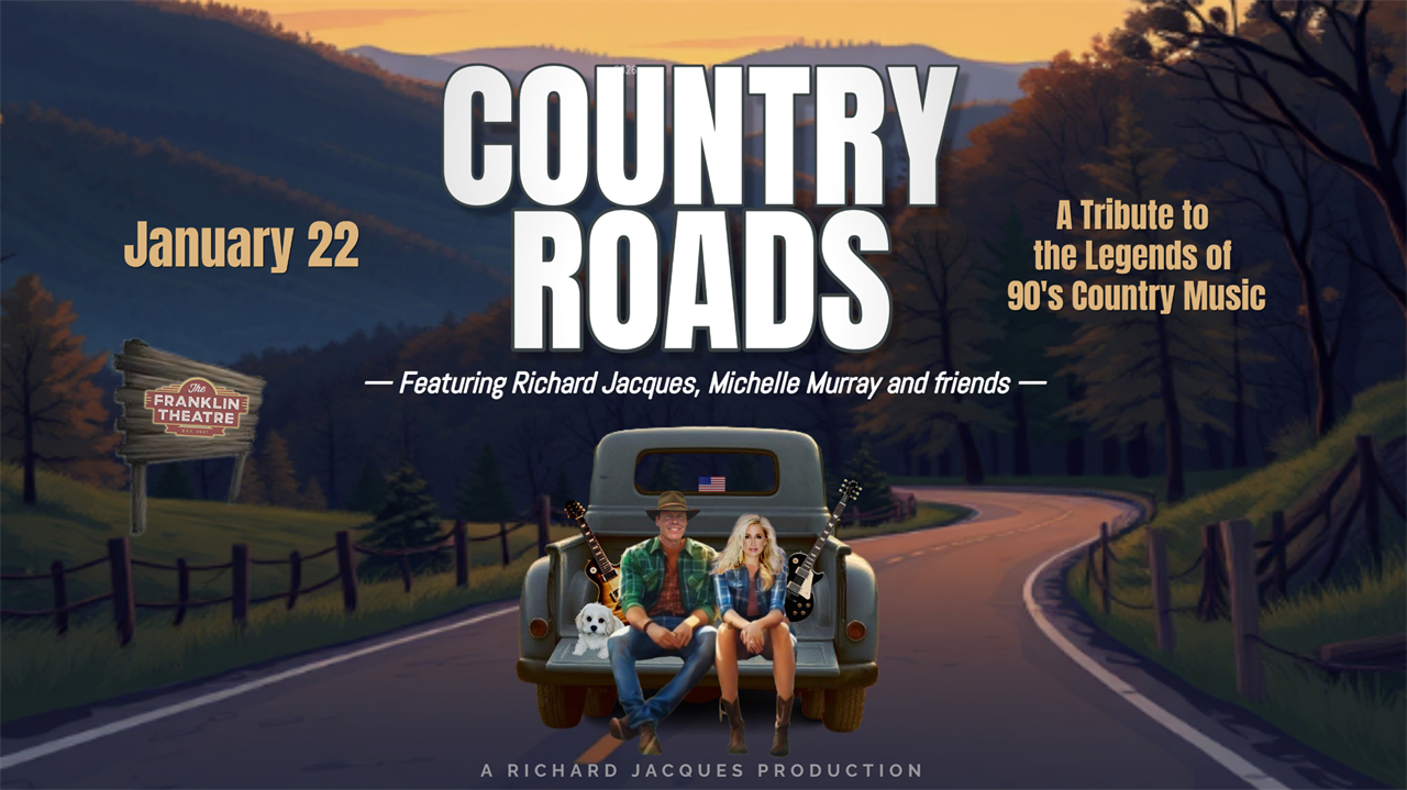 Join us for Country Roads: A Tribute To the Legends of 90's Country Music, featuring the talents of Richard Jacques, Michelle Murray and friends. Whether you’re a lifelong country fan or new to the genre, you’ll enjoy this high-energy show which returns to the Franklin Theatre Jan. 22 after a sellout show in 2025. The production honors the contributions of legendary artists from the 1990's country music scene including Randy Travis Tritt, George Strait, Garth Brooks, The Judds, Alan Jackson, Brooks & Dunn, Martina McBride, Trisha Yearwood, Reba McEntire, Dwight Yoakam, and more.