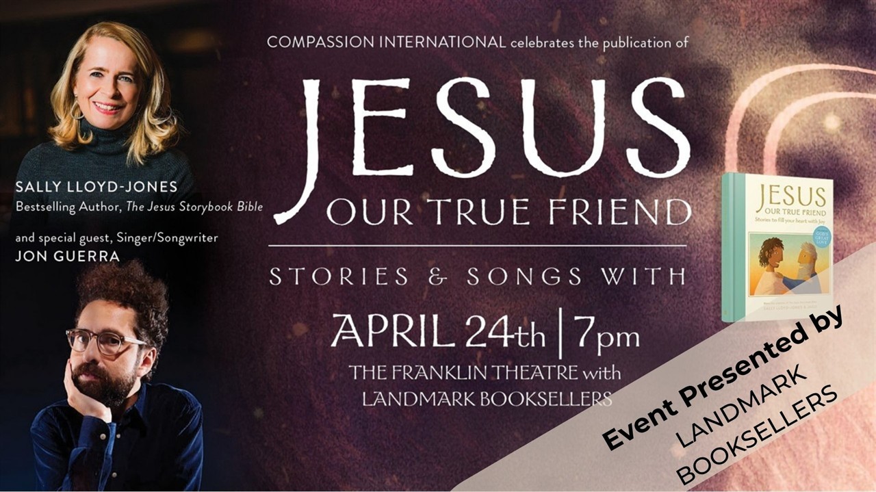 Join beloved storyteller Sally Lloyd-Jones and acclaimed singer/songwriter Jon Guerra for Jesus, Our True Friend Stories & Songs—an evening of heart, humor, and beauty at the Franklin Theatre on April 24 at 7 p.m. Experience Sally’s delightful storytelling paired with Jon’s soulful music for a truly lovely and deeply moving night in Franklin. This event is geared toward kids who are elementary age and up.