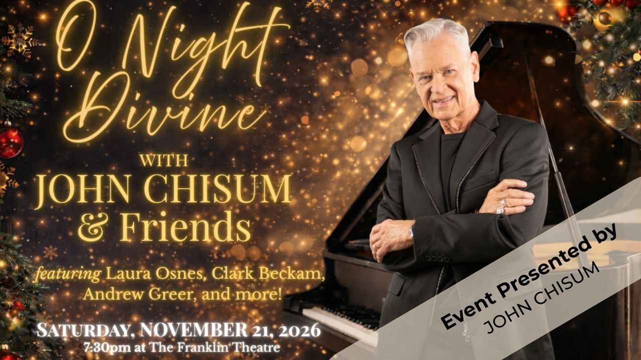 Enjoy an elegant evening filled with traditional holiday favorites and exciting new Christmas selections with veteran Nashville singer-songwriter John Chisum. Joined by American Idol's powerhouse vocalist Clark Beckham, popular singer-songwriter and author Andrew Greer, Broadway superstar Laura Osnes, and many more surprises, this will be an unforgettable holiday experience you won't want to miss.